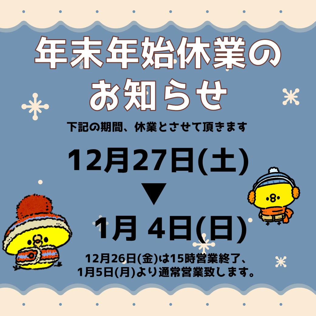 ※年内最終営業日の12月26日(金)は15時に営業終了します。ご注意下さい。